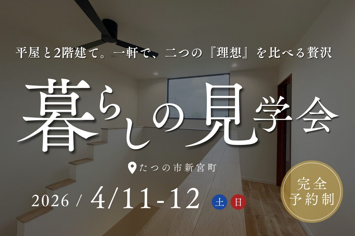 今回、たつの市新宮町で開催する「暮らしの見学会」は、そんな方にこそ見ていただきたい特別な住まいです。