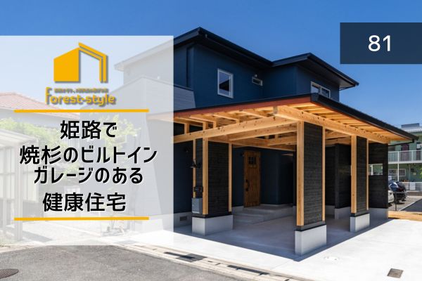 焼杉仕上げと一体になったガレージ 柱部分は地元の木材を化粧で見せつつ、…